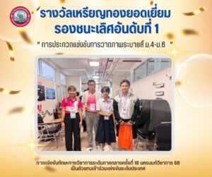 ขอแสดงความยินดีกับนักเรียนที่เป็นตัวแทนระดับภาคกลางเข้าแข่งขันระดับประเทศ ณ จังหวัดสกลนครประกวดแข่งขันการวาดภาพระบายสีมัธยมศึกษาปีที่ 4-6 #ได้รับรางวัลรองชนะเลิศอันดับ1