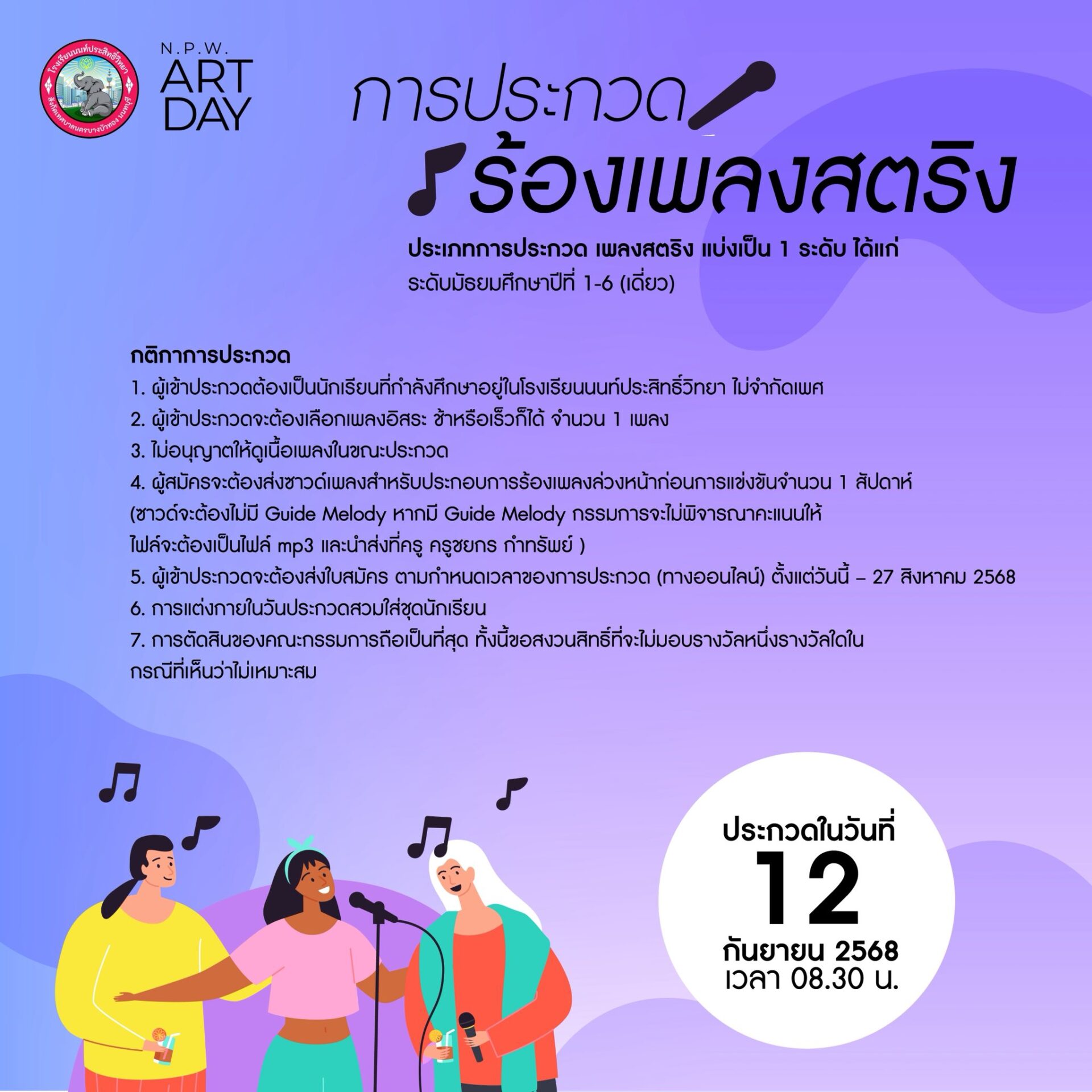 กับหลากหลายกิจกรรมที่เชิญชวนลูกๆ น.ป.ว. เข้าร่วมท้าทายความสามารถ และแสดงศักยภาพทางดนตรี และศิลปะ พร้อมเป็นกำลังใจให้ทุกกิจกรรมรายละเอียดตามนี้