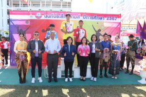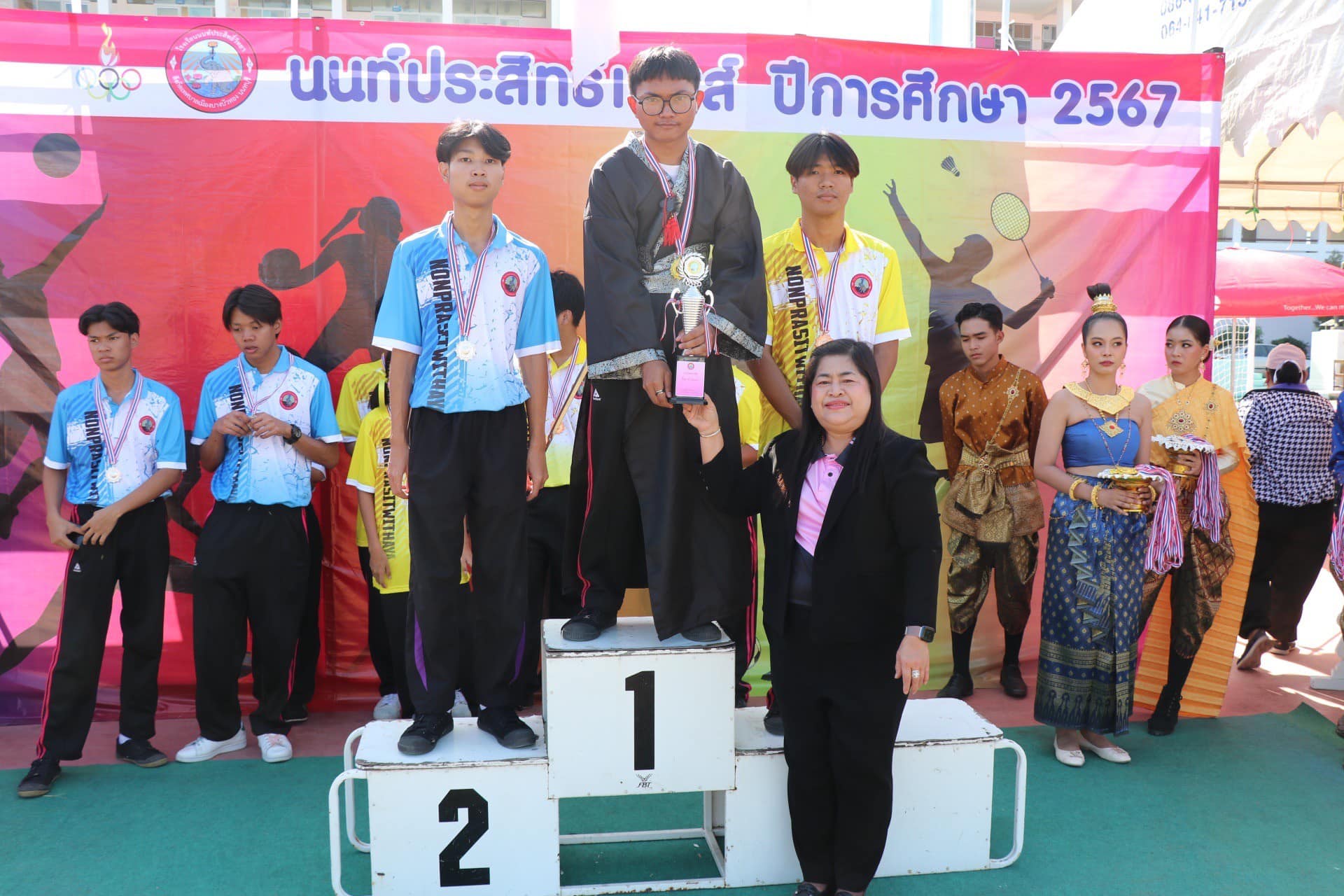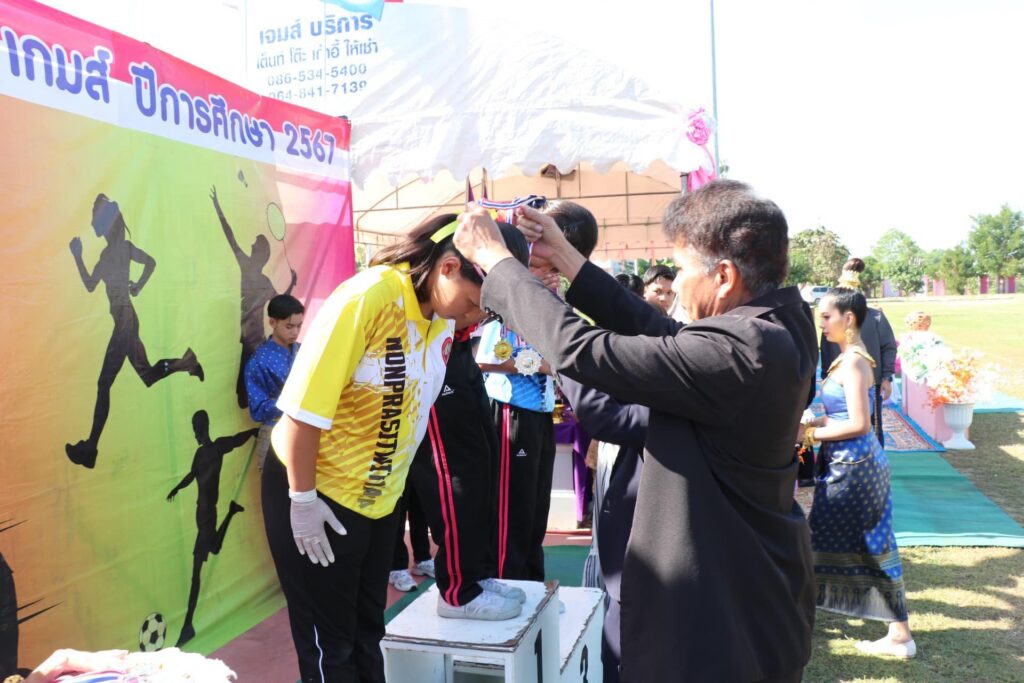 โดยได้รับเกียรติจาก นางสาวโฉมเฉลา สงวนพรรค รองนายกเทศมนตรีเมืองบางบัวทอง เป็นประธานในการแข่งขันกีฬาภายใน “Nonprasitwithaya Games 2567” รวมทั้งคณะผู้บริหาร สมาชิกสภาเทศบาล หัวหน้าส่วนราชการ คณะกรรมการสถานศึกษาขั้นพื้นฐาน และผู้บริหารสถานศึกษาในสังกัดเทศบาลเมืองบางบัวทอง เข้าร่วมในพิธี